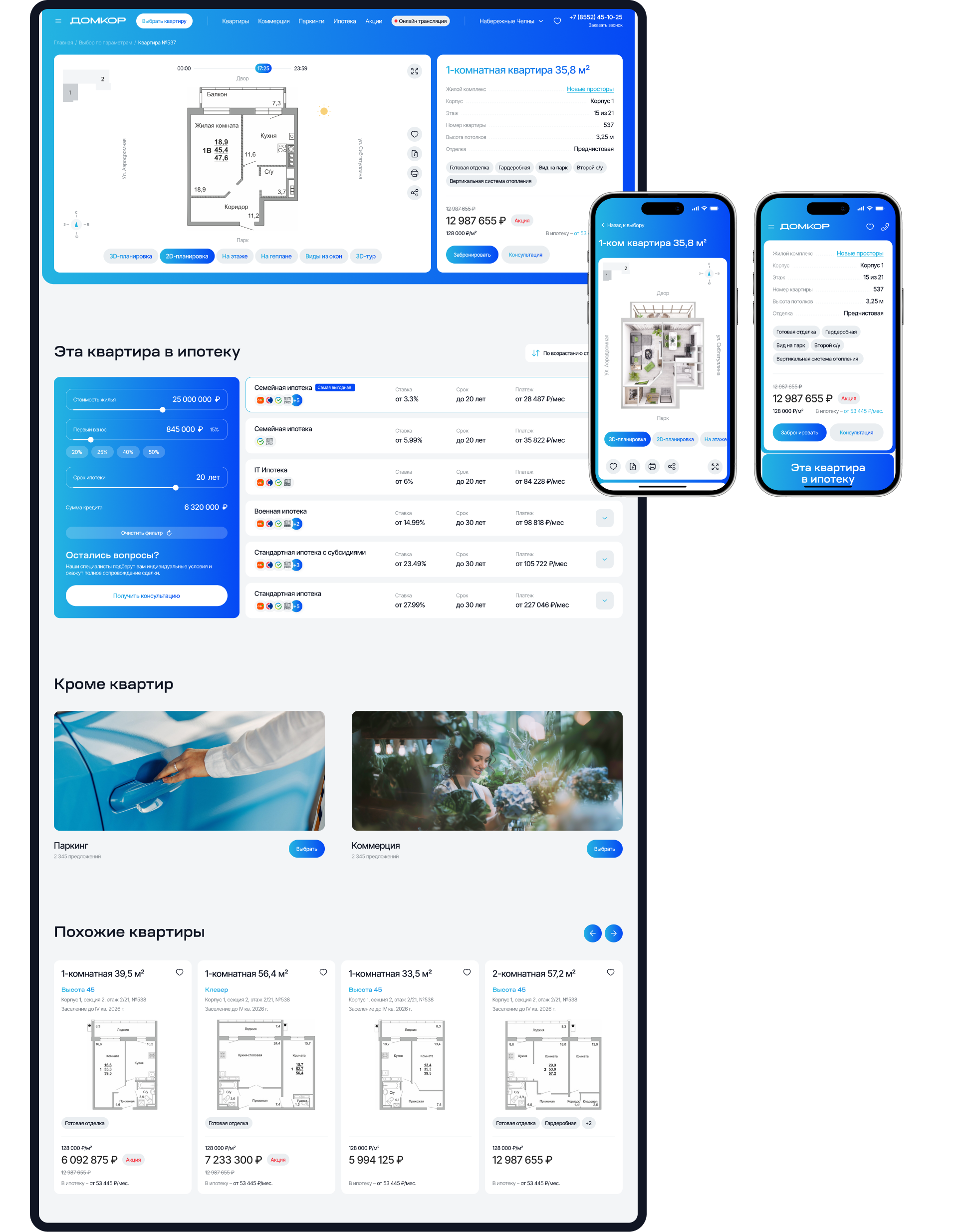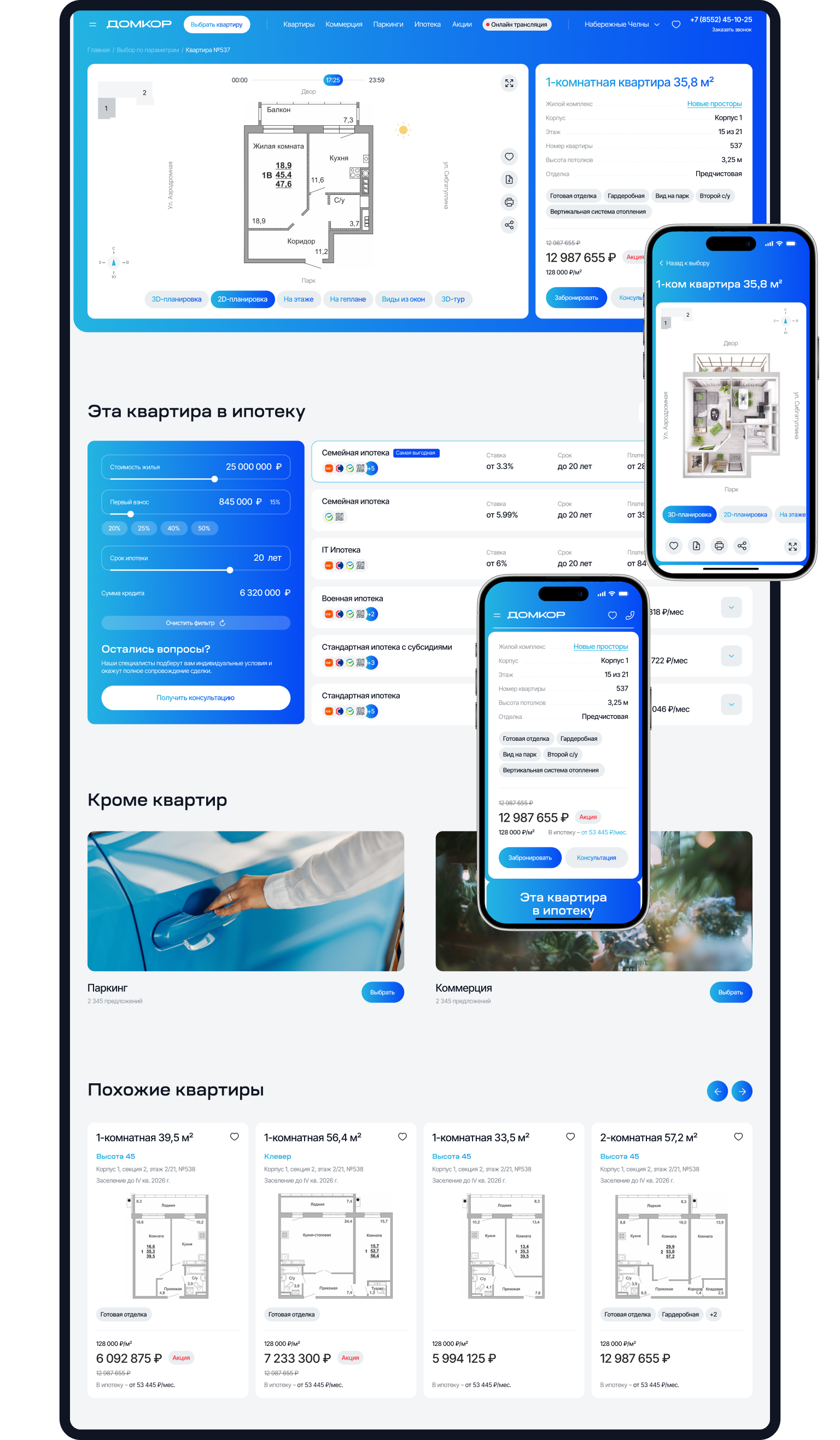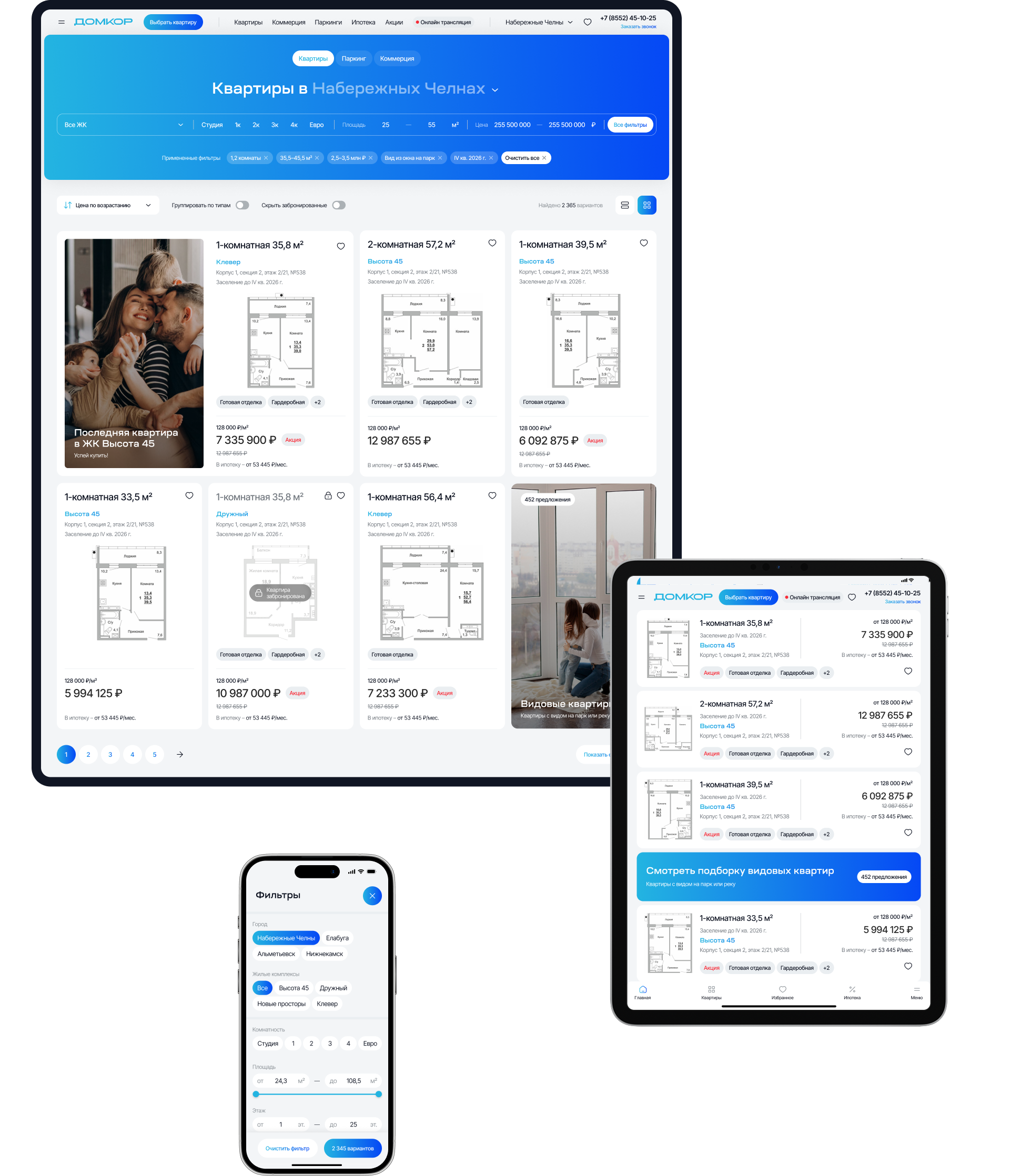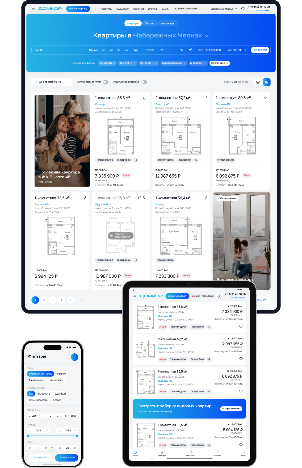 Наша команда сделала не только редизайн, но и превратила сайт в удобный инструмент для подбора жилья, сделав поиск недвижимости быстрым и приятным.