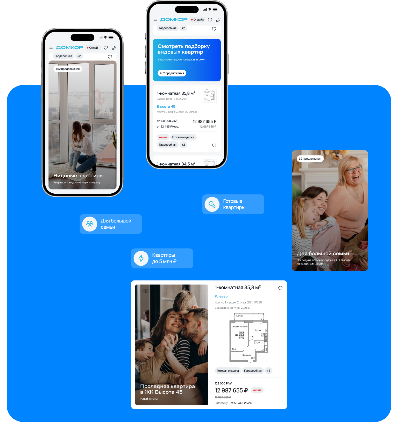 Для удобства работы с большим количеством вариантов мы добавили подборки квартир — решение ускоряет процесс выбора для конкретных пользователей.