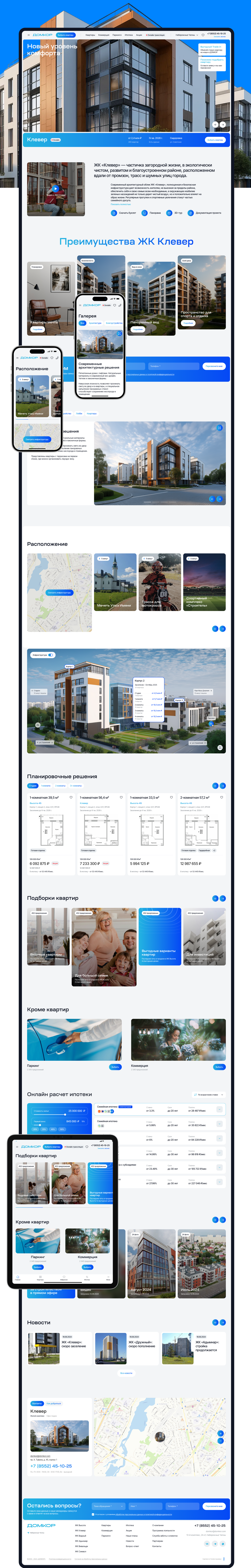На странице содержится исчерпывающая информация о проекте, включая детальное описание преимуществ жилого комплекса и окружающей инфраструктуры.