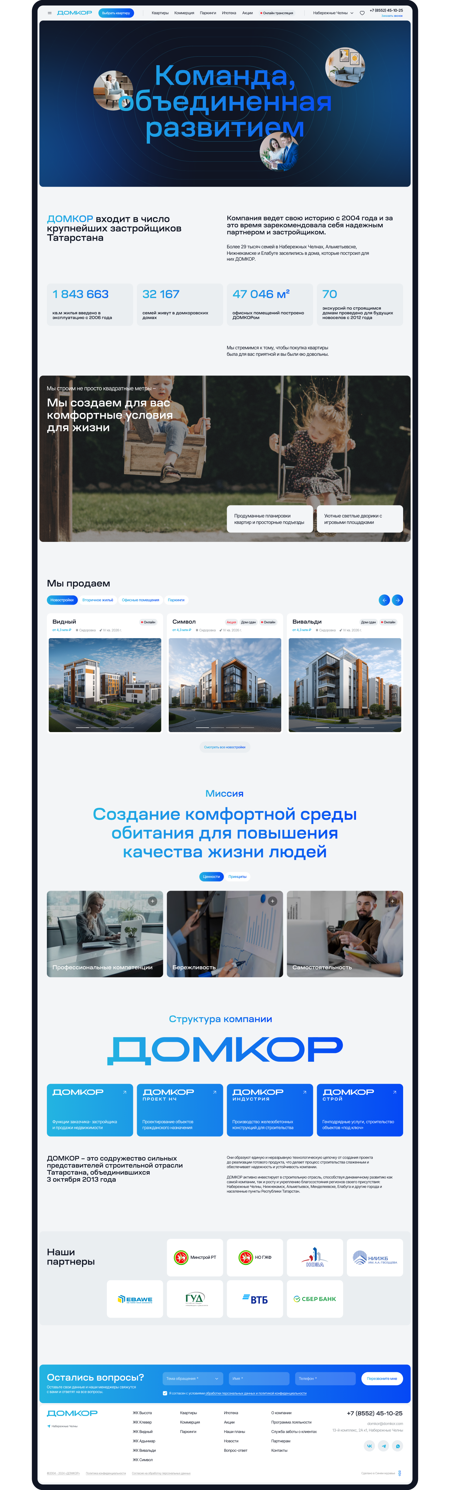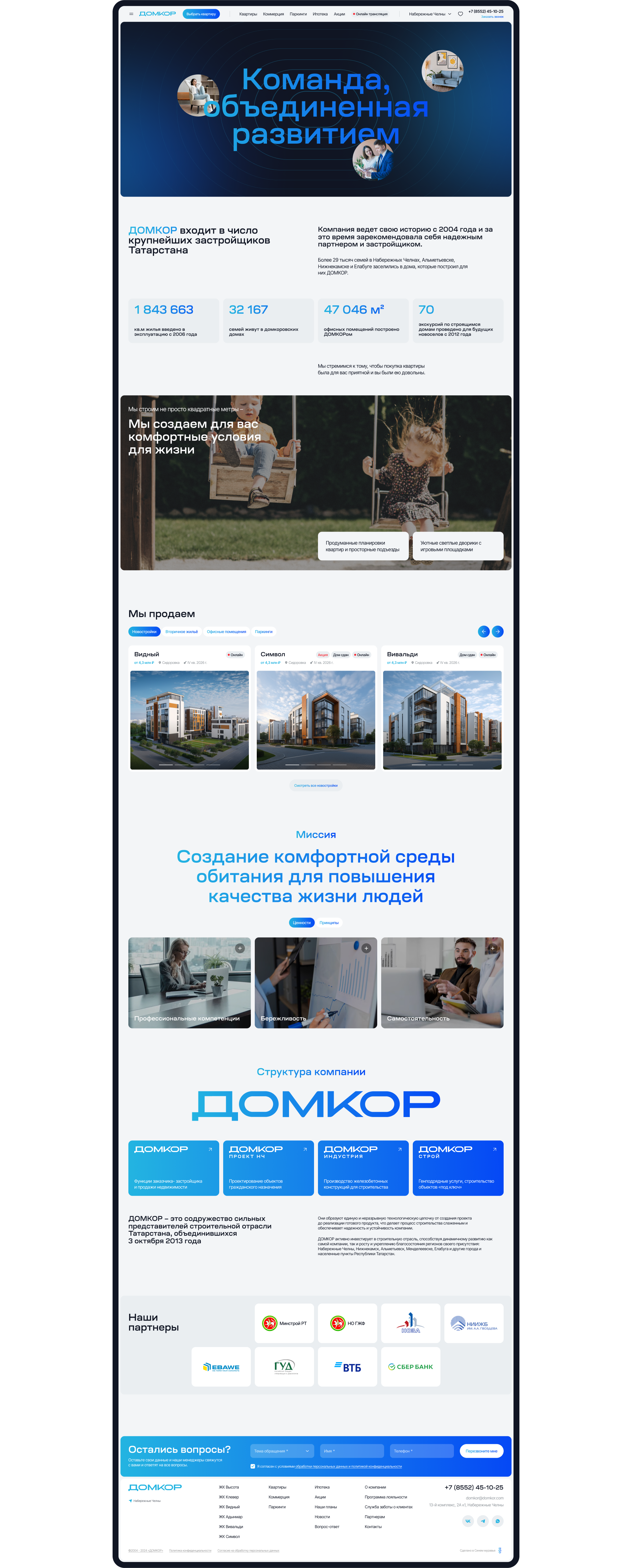 ДОМКОР — один из крупнейших застройщиков Татарстана с более чем двадцатилетним опытом строительства и множеством реализованных проектов.