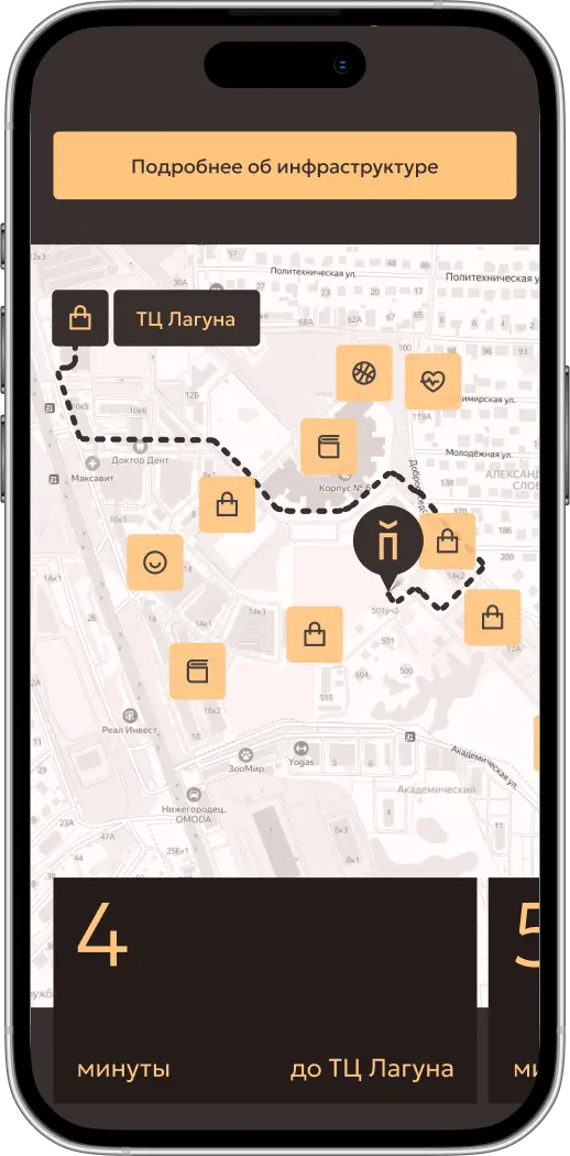 Параметрический выбор включает в себя поиск квартиры и машино-места. С учетом индивидуальных особенностей восприятия пользователей карточки недвижимости разработаны как в плиточном виде, так и в формате списка.